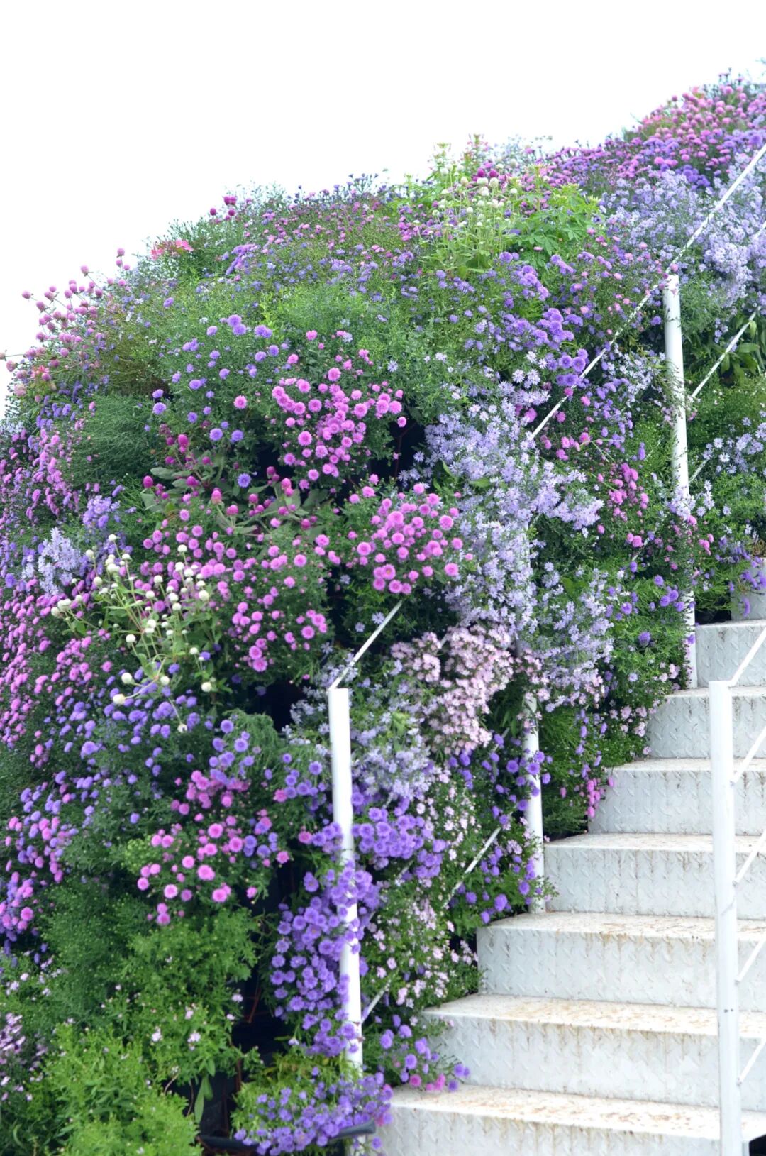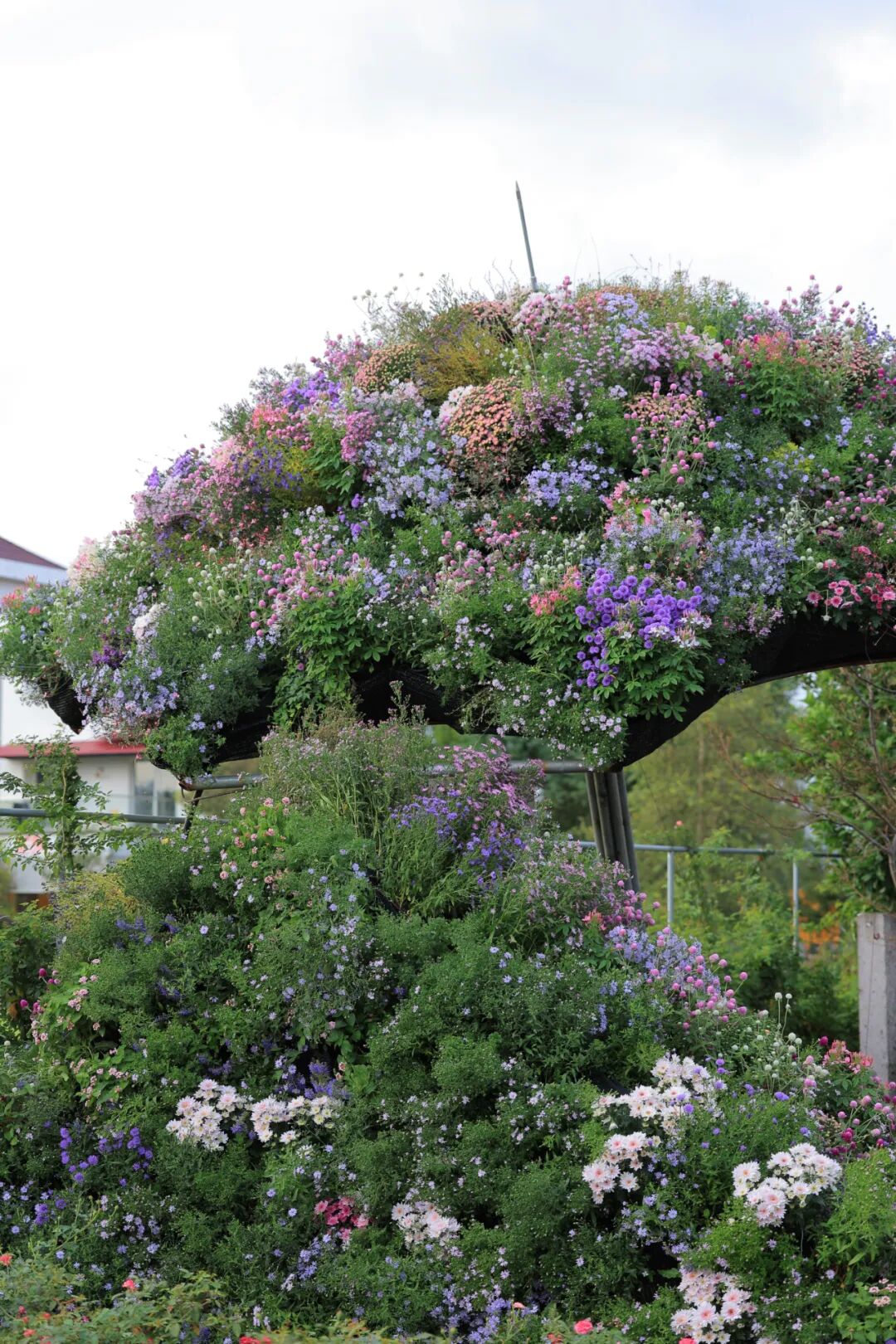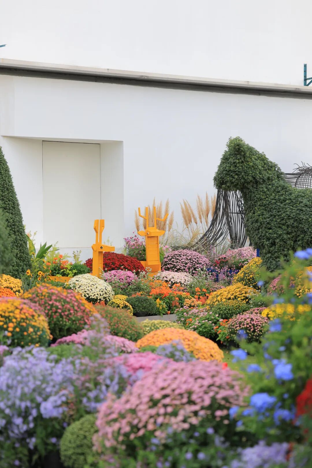 成功打响城市花展IP的虹越,9月29日至11月16日期间,又推出了一个新的花事活动品牌:长安菊展。 这也是在虹越本部,浙江省海宁市长安镇举办的第一个大型秋日花展。展览一共动用350多个品种3万多盆菊花,打造了20多个观赏打卡点。有别于传统菊展重构架、造型化、多古典品种的特征,长安菊展带来了一系列更加年轻且家庭化的布展表达,为秋日花展注入新的血液。 因为年轻化的定位,花材的选择就格外重要。长安菊展,各种外型圆润而有爆花特质的菊花种类及菊类花材随处可见。国庆假期的浙江,暑气刚刚开始褪去,菊花渐入花期,即便是还未开花的品种,满满的花苞也昭示了未来可期。 在色彩上,则以梦幻的粉紫色系为主调,各种深深浅浅的粉、白、紫、黄交织成一片绝美幻境。鸟尾花、三角梅、观赏草、千日红等秋季应季花卉点缀期间,增强了视觉的丰富感与层次感。 多个打卡点展现了极致创意,各种花巷、花墙、花道、花伞、花境鳞次栉比,步步皆是景。通过将高速公路护栏回收再利用,打造而成的蜿蜒曲折的织锦迷宫,饱满的球菊与月季穿插种植其间;用木框搭建出的精巧八音盒造型,搭配摇曳的观赏草、草垛等场景,是满满的闲适田园氛围感。春季世界花园大会期间惊艳了全国的绣球花展区域,在秋日菊展则换上了荷兰菊的新装,满满的小碎花,秀气清新。 不止步于户外的创意与活力,花展还配备了温室展区,着重呈现传统菊花品种与菊艺的深厚文化底蕴,古今融合,满足不同爱好者的观展需求。 依托于菊花及菊类植物悠长的花期,整个花展将长达一个半月,方便园艺爱好者充分安排时间前来一睹芳容。其中,花展期间正值一年一度的钱塘江大潮盛况,通过观潮与赏花结合,注定是一场别开生面的秋日花事活动。