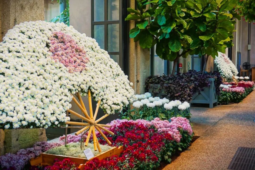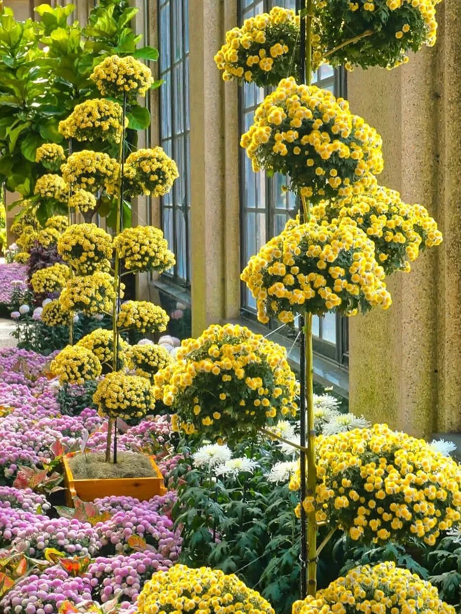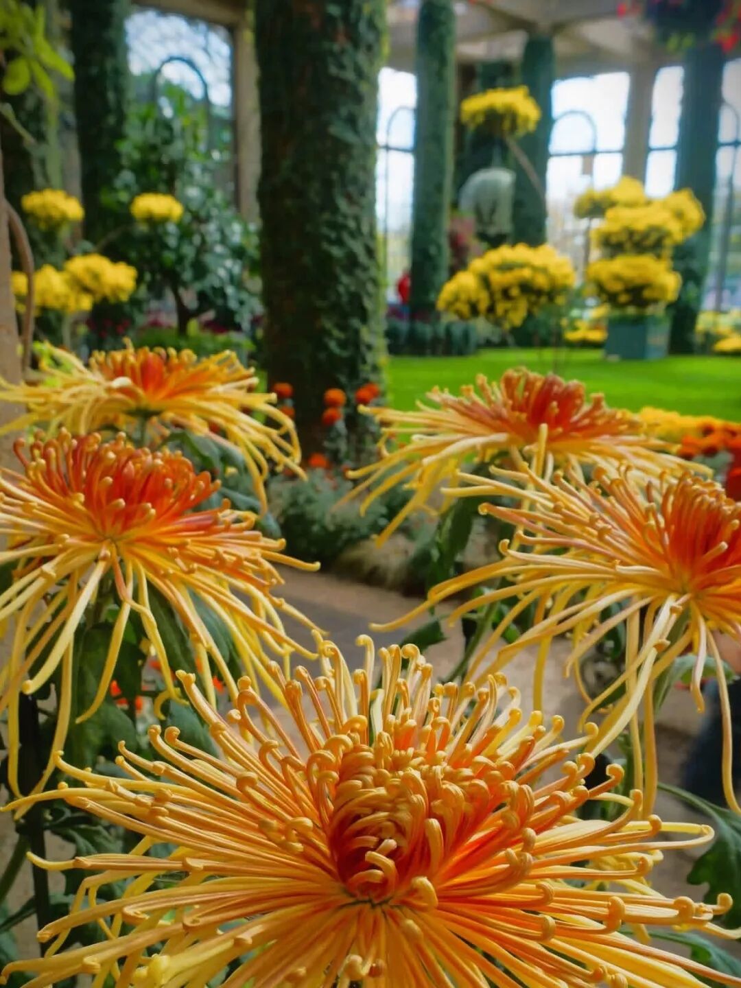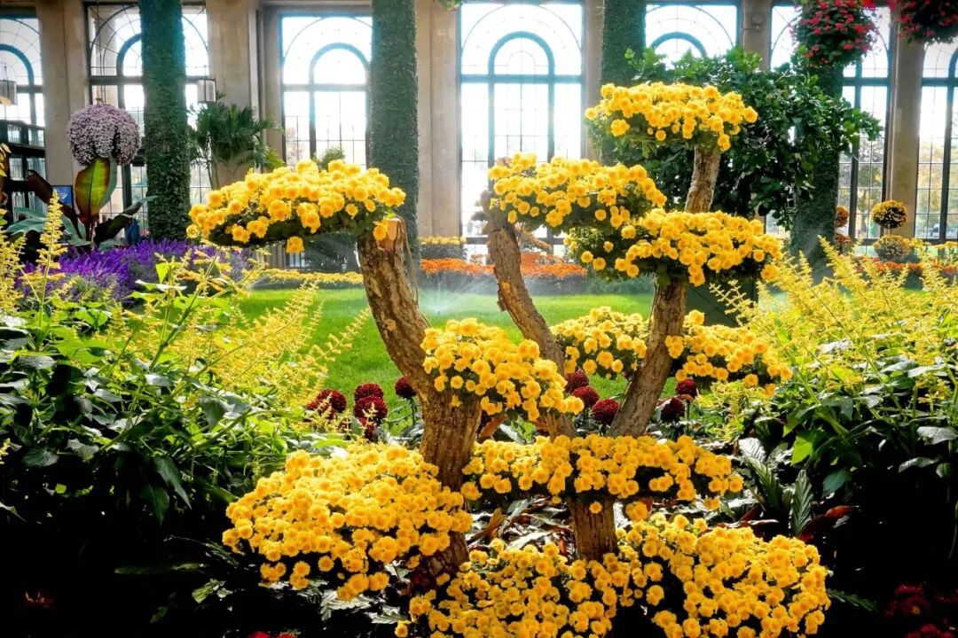 长木花园(LONGWOOD GARDENS)位于美国宾夕法尼亚州,费城以西的布兰迪万河谷。它占地445公顷,不仅是美国一流,也是世界著名的植物园、树木园、公共花园。其创始人为皮埃尔·S·杜邦(Pierre S. du Pont, 1870-1954)。园内共栽培种植着11000多种植物,鲜花、大树、喷泉是它为游客津津乐道的焦点。 这里有全美最大的玫瑰园,也会在每年的秋季组织让人赏心悦目的菊花展。2025年长木花园菊花节10月25日开幕,成千上万的菊花在接下来的3周里会给秋季的长木花园带来冬日前最后的一抹亮色。 据介绍,今年的花展规模超过往年,有各色的品种菊、景观菊、造型菊、大立菊,充满浓浓的东方特色。这是花园栽培团队从日本学习的技术并由自己栽培。原来,他们也在不断探索传统与创新的结合。园方在介绍大立菊的推文中写道,“我们的专业团队花费超过18个月和2000多个小时来培育这棵植物,最终在亚洲以外地区呈现出了同类植物中最大的开花数量:1363朵!” 除了大立菊,园方统计有菊花造型66种,并且还开设有会员活动,让游客有机会了解菊花造型制作的奥秘,并可以与制作团队有更多的交流。参加菊花节摄影活动还有机会提前入园观展。这也是长木花园通过自然之美、保护与学习为所有人带来欢乐与启迪的典型做法。