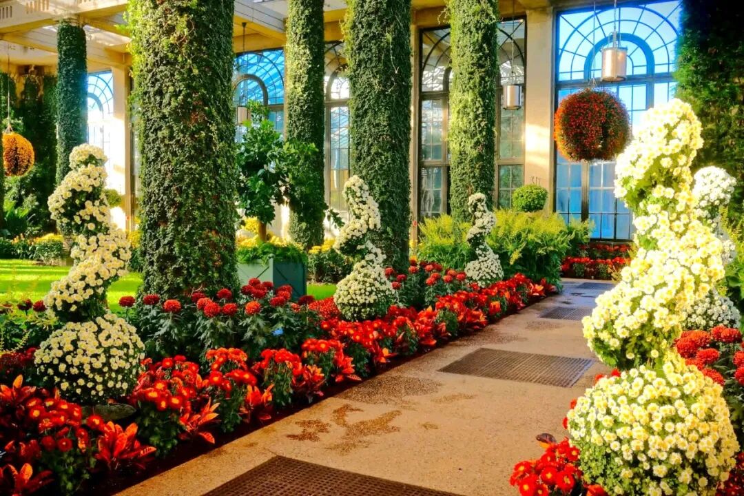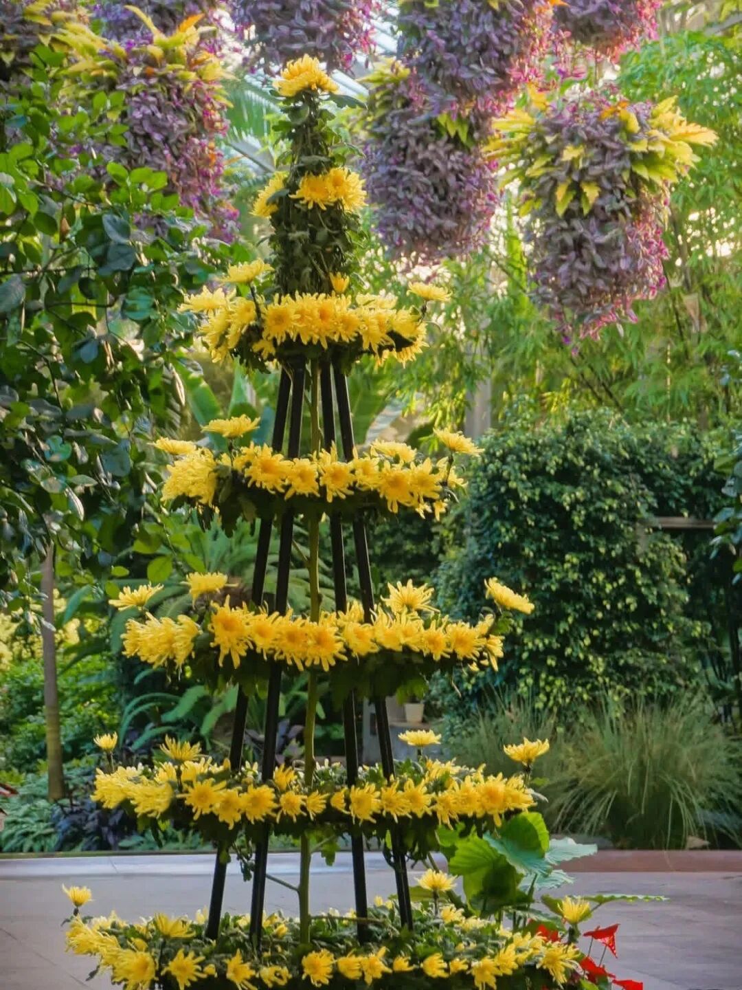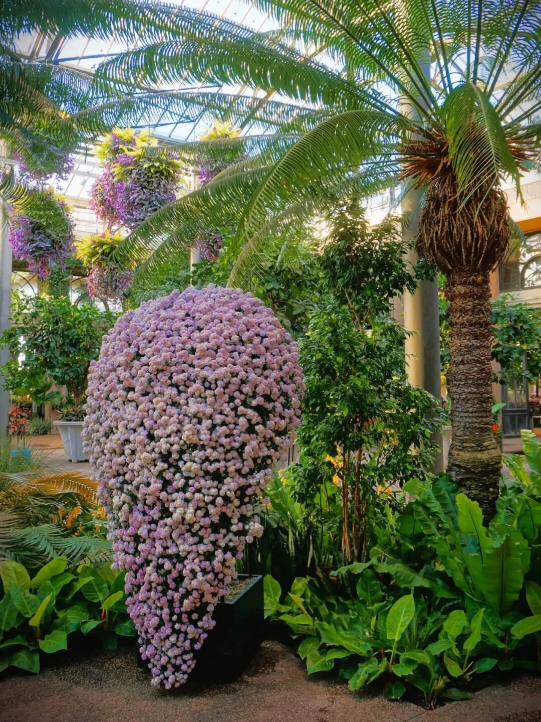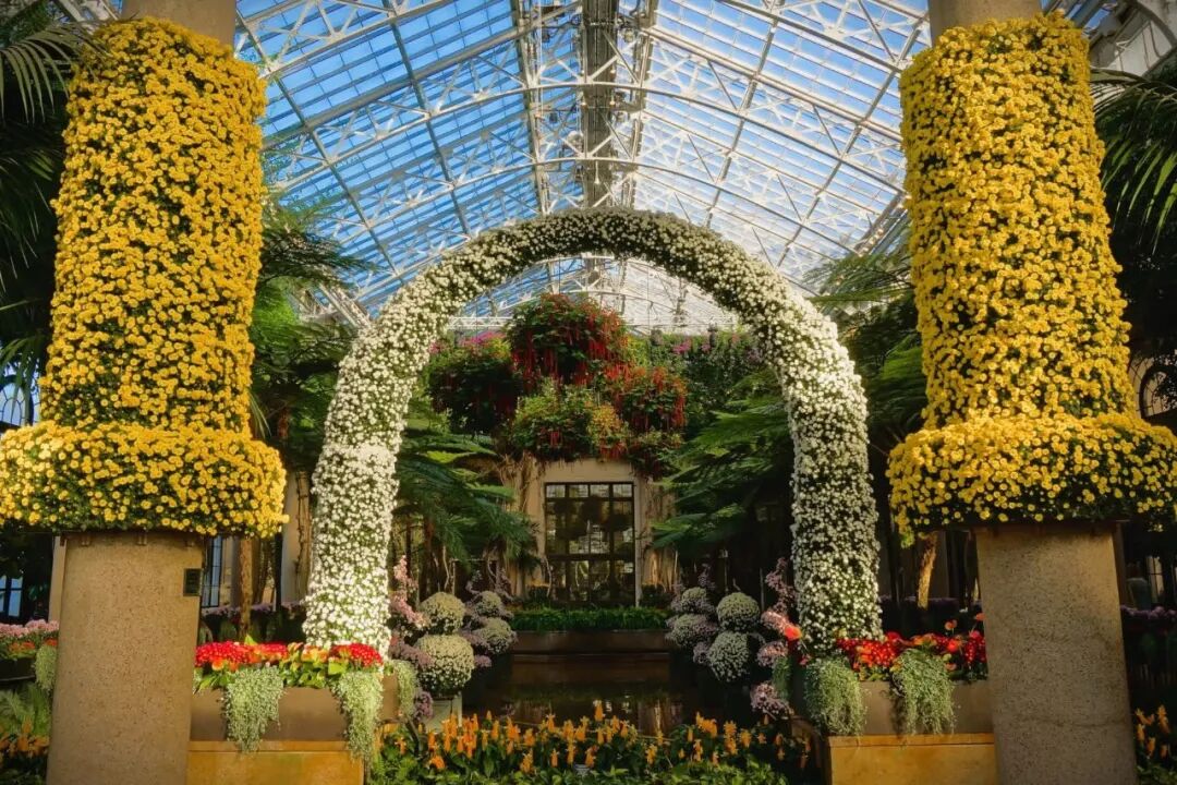 长木花园(LONGWOOD GARDENS)位于美国宾夕法尼亚州,费城以西的布兰迪万河谷。它占地445公顷,不仅是美国一流,也是世界著名的植物园、树木园、公共花园。其创始人为皮埃尔·S·杜邦(Pierre S. du Pont, 1870-1954)。园内共栽培种植着11000多种植物,鲜花、大树、喷泉是它为游客津津乐道的焦点。 这里有全美最大的玫瑰园,也会在每年的秋季组织让人赏心悦目的菊花展。2025年长木花园菊花节10月25日开幕,成千上万的菊花在接下来的3周里会给秋季的长木花园带来冬日前最后的一抹亮色。 据介绍,今年的花展规模超过往年,有各色的品种菊、景观菊、造型菊、大立菊,充满浓浓的东方特色。这是花园栽培团队从日本学习的技术并由自己栽培。原来,他们也在不断探索传统与创新的结合。园方在介绍大立菊的推文中写道,“我们的专业团队花费超过18个月和2000多个小时来培育这棵植物,最终在亚洲以外地区呈现出了同类植物中最大的开花数量:1363朵!” 除了大立菊,园方统计有菊花造型66种,并且还开设有会员活动,让游客有机会了解菊花造型制作的奥秘,并可以与制作团队有更多的交流。参加菊花节摄影活动还有机会提前入园观展。这也是长木花园通过自然之美、保护与学习为所有人带来欢乐与启迪的典型做法。