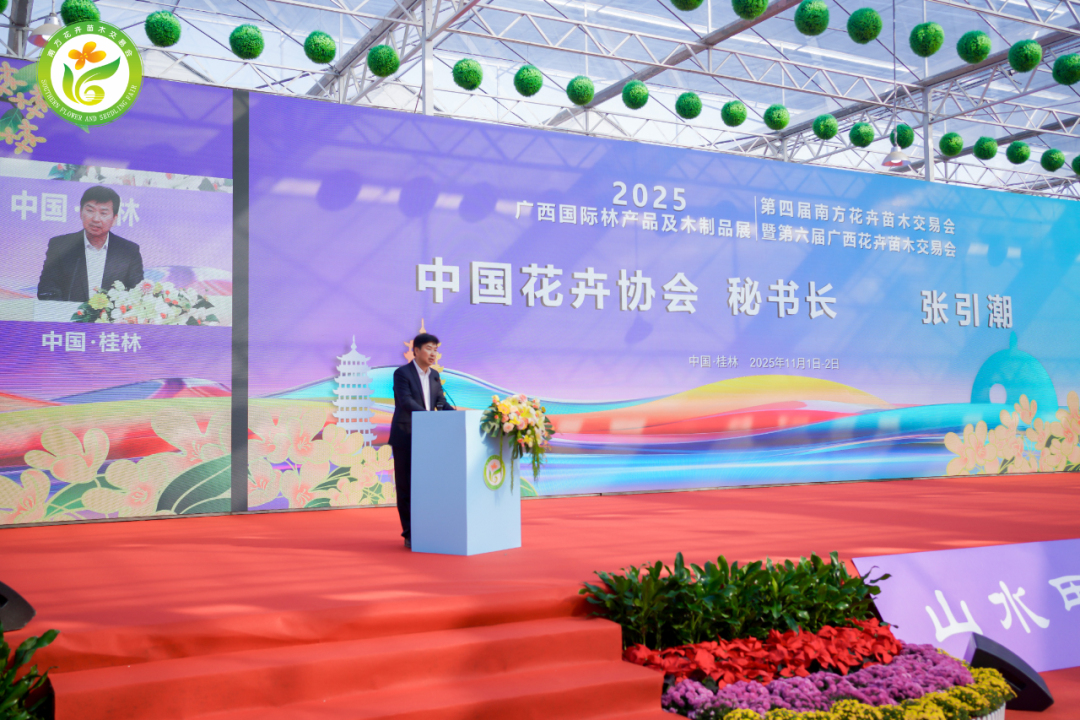 11月1日,由中国花卉协会、广西壮族自治区林业局、桂林市人民政府共同主办的2025年广西国际林产品及木制品展——第四届南方花卉苗木交易会暨第六届广西花卉苗木交易会在桂林开幕。国家林业和草原局,中国花卉协会,广西壮族自治区人民政府、林业局,桂林市人民政府,南方参展省、区、市林业局和花卉协会等有关单位领导和嘉宾出席开幕式。 经商务部同意,本届交易会纳入2025年广西国际林产品及木制品展活动框架,以“山水甲天下,南方花盛开——花漾生活,绿意满家”为主题,主会场位于桂林市叠彩区“缤纷叠彩”广西现代特色林业示范区,设有花卉苗木,兰花、桂花、家庭园艺场景,家庭园艺,插花花艺,盆景,精品园,花境园艺,企业等特色展区。2个分会场位于叠彩区大河坊、秀峰区桂花公社,分别设置花街展区与桂花全产业链产品展区。 开幕式上,发布了2026年度全国苗木供需分析报告和新华·中国(合肥)苗木价格指数,桂林市、梧州市以及广东省分别作推介。主会场参展商超过1100家,参展花卉苗木2000余个品种(含分会场),各类展品60多万件,从专业苗木到家庭盆栽,从桂花深加工产品到园艺文创,全方位覆盖“赏、用、购”需求,通过打造“好看、好玩、好买”的实景体验平台,推动“花卉流量”转化为“消费增量”。 本届交易会较往届有以下三大特点。一是与市民需求更贴近。紧跟消费新趋势,专设家庭园艺、插花、花境园艺等特色展区,集中展示适合家庭场景的花木品种、园艺工具,提供专业设计咨询与技术指导,帮助大众了解、参与、爱好园艺,激发家庭消费潜力。二是活动内容更丰富。新增了2025年广西林业行业职工职业技能竞赛(插花花艺师赛项)、高校花卉主题艺术创作、网络短视频大赛等多项互动性强、参与度高的活动,并首次在桂花公社同步承办中国花卉协会桂花分会年会,推动桂花产业从传统种植向全产业链拓展,促进产业提质增效,实现高质量发展。三是沉浸式参会更便捷。首次启用定制化微信小程序,实现“无纸化会务”,方便参会者随时查询日程、查找展区、了解动态,市民参与更便捷高效。 南方花卉苗木交易会已在桂林连续成功举办四届,交易会秉承广西国际林产品及木制品展“高效对接、资源共享、优势互补”的办展宗旨,是集中展示南方各省区市在新优品种培育、精深产品研发、园艺资材创新等方面的最新成果的重要品牌活动,对推动构建开放、协同、高效的南方花卉苗木统一大市场,助力花卉苗木产业高质量发展,发挥了积极作用。