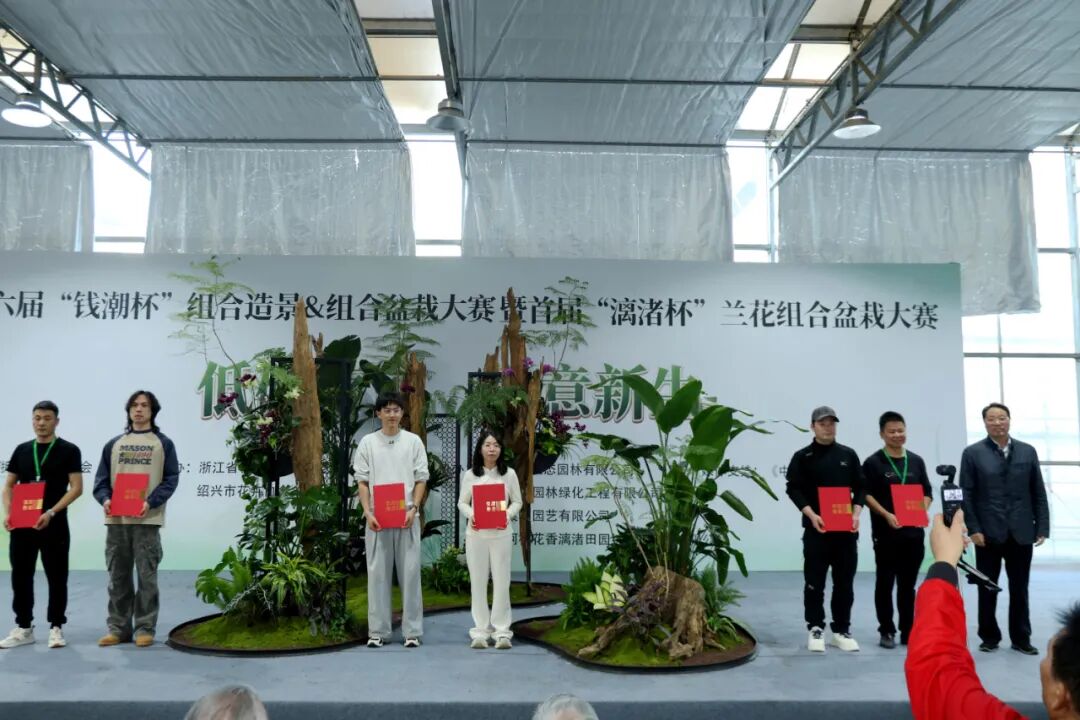 11月15~16日,由浙江省花卉协会主办,浙江省花卉协会环境艺术分会承办,绍兴市花卉协会等单位协办的第六届“钱潮杯”组合造景与组合盆栽大赛、首届“漓渚杯”兰花组合盆栽大赛在浙江省绍兴市漓渚花市圆满落下帷幕。比赛以“低碳疗愈,绿意新生”为主题,贯穿绿色发展理念,以期用更多元的形式推进花卉园艺行业向生态化、疗愈化转型升级。这不仅是一场技艺的较量,更是一次理念的传播与行业的凝聚。 ▲浙江省花协领导为获奖者颁奖 本次活动聚焦组合造景与组合盆栽的专业技能提升和创新实践,采用系统培训与实战竞赛相结合的方式,为从业者搭建了学习交流、展示才华的平台。在作品主题设置及材料的选择上,强调低碳环保理念与植物疗愈形式,鼓励选手使用可再生资材与乡土植物,创作兼具生态功能与心理疗愈价值的绿色空间,推动探索租摆行业绿色转型。 ▲选手们认真比赛 ▲评委们严格评审 竞赛分为组合造景、组合盆栽(大作品、小作品)以及兰花组合盆栽4大类别,参赛作品紧扣主题,设计新颖,技艺精湛,充分展现了选手们的创意与专业水平。经专家评审团严格评审,组合造景类共评选出一等奖1名、二等奖2名和三等奖3名;组合盆栽(大作品、小作品)以及兰花组合盆栽3类,每类分别评选出一等奖1名、二等奖3名和三等奖6名。各大类别还分别设有优胜奖及优秀奖若干名。 ▲廉兵、王子木、韩海为选手们作赛前培训、赛后点评 比赛开始前的培训是本次竞赛的特色之一。组织者特别邀请廉兵、韩海、王子木等国内一流花艺与盆栽专家亲临授课,围绕组合造景与盆栽的设计理念、植物配置、色彩搭配、造型技巧以及低碳疗愈理念等内容展开系统讲解,有效提升了学员的专业素养和实操能力。 ▲部分组合造景获奖作品 两天的培训与竞赛,参赛选手不仅提升了专业技能,增强了行业认同感,还进一步激发了创新意识与实践热情,为浙江省花卉园艺行业的高质量发展注入了新动力。 ▲部分组合盆栽获奖作品 ▲兰花组合盆栽获奖作品