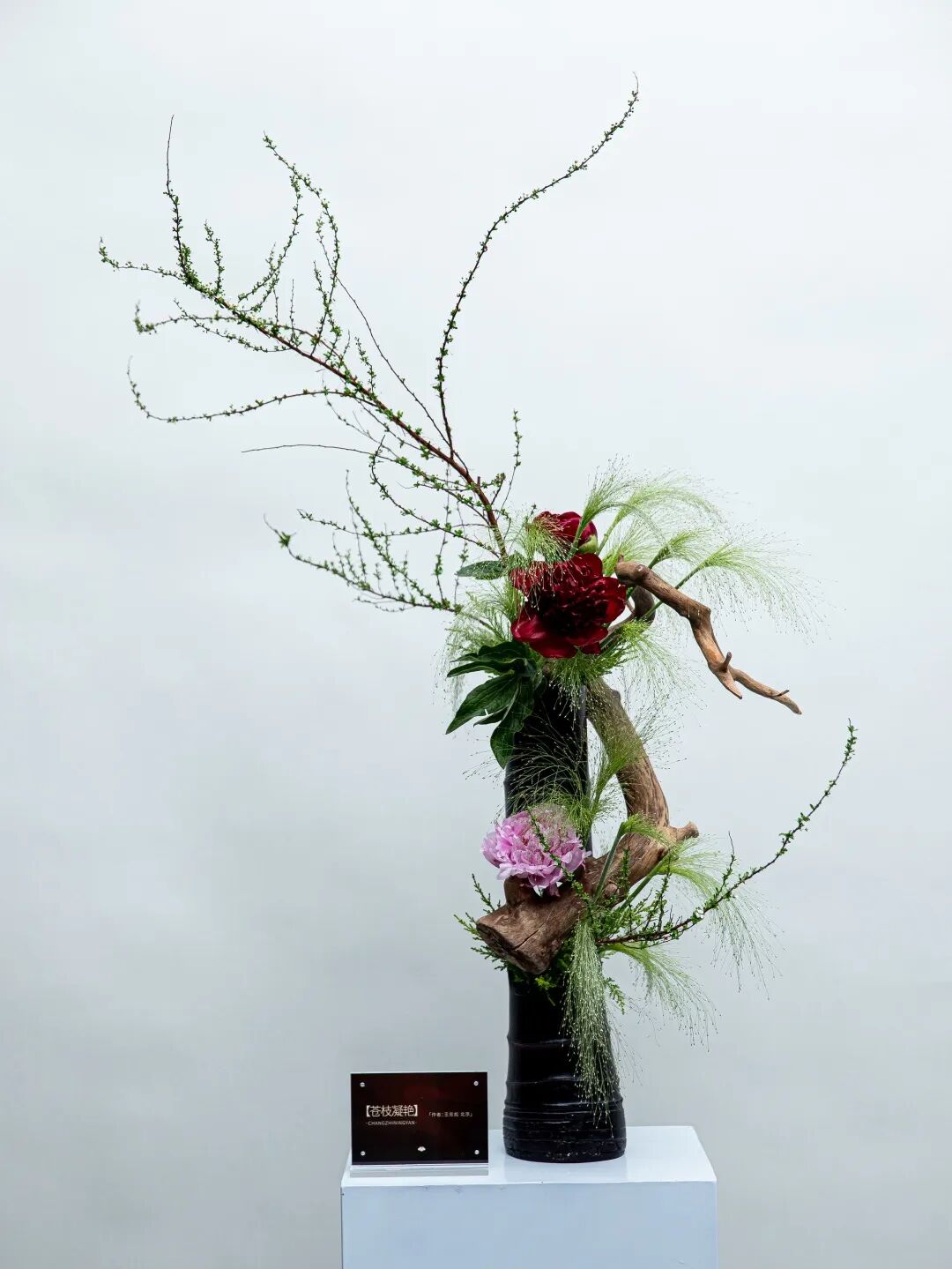 ▲“雪”——梅花喜欢漫天雪 (主花材:梅)徐国栋、姜智玲协助制作
