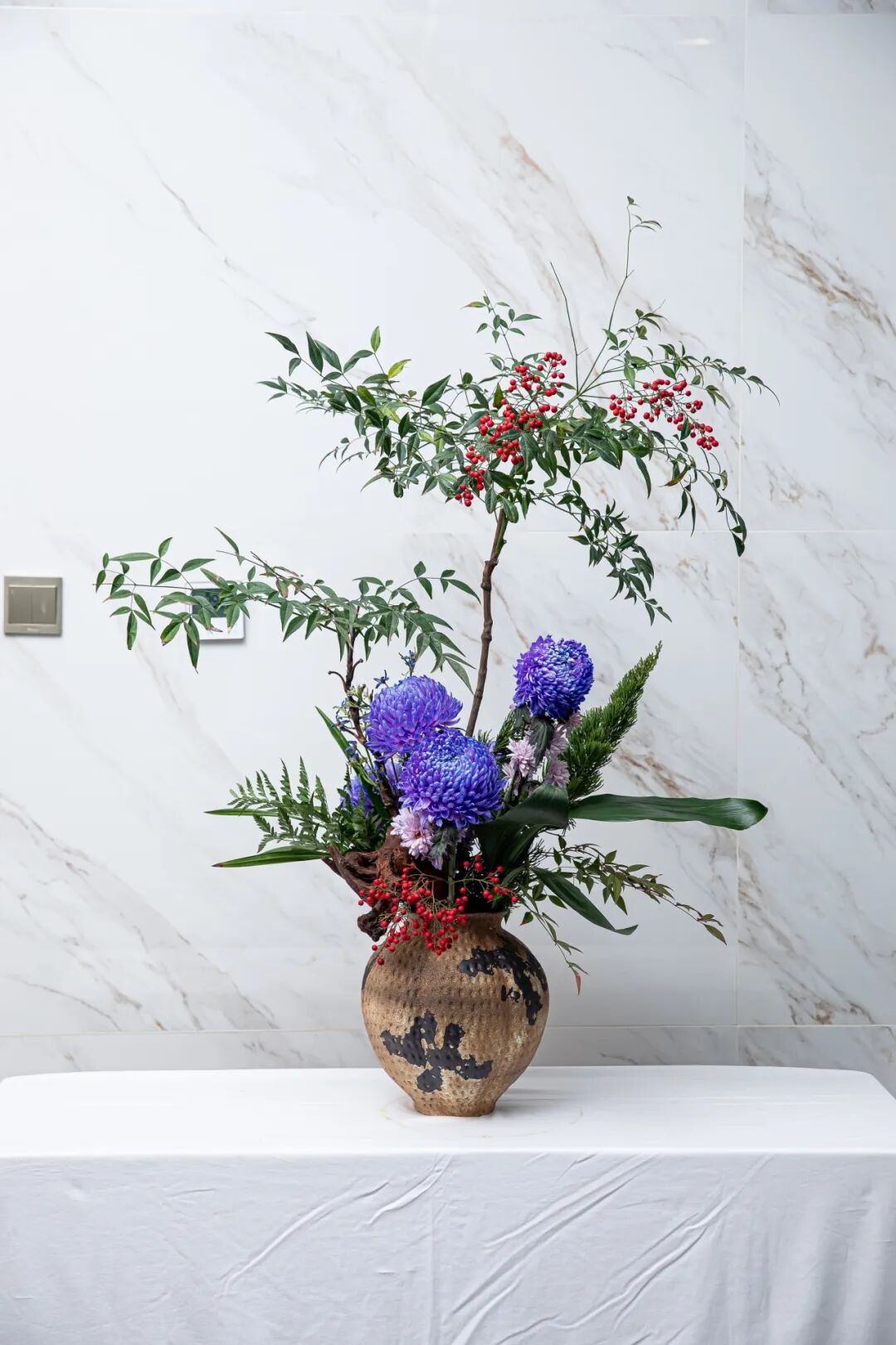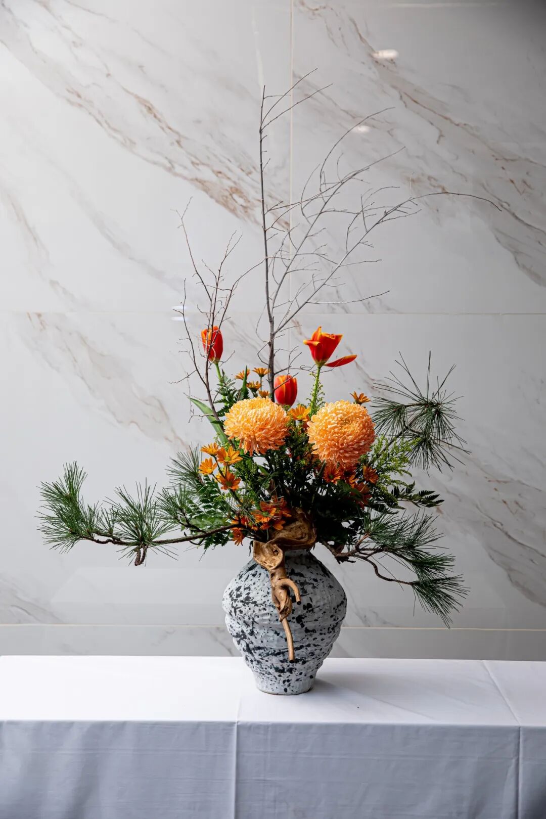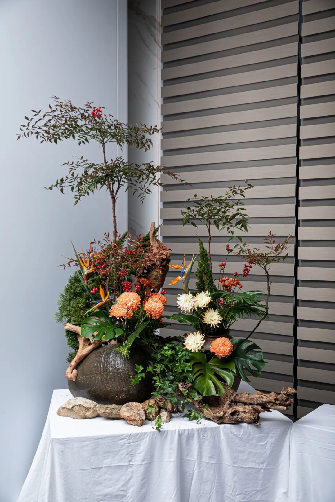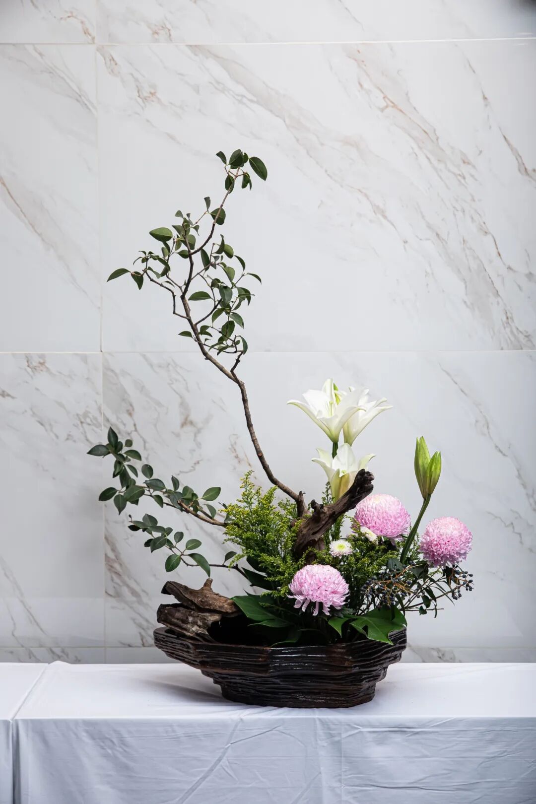 此刻,兰若的厅堂成了一个微缩的世界。大师们的指尖翻飞之际,将山岚的呼吸定格在枝桠的斜逸里。这边,山间幽兰配以素陶青瓷,疏影横斜,流淌着东方文人的林泉之志;那边,异域繁花置于璀璨水晶,姹紫嫣红,洋溢着巴洛克式的激情颂赞。