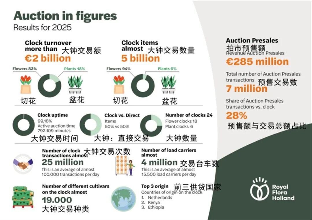 荷兰花荷拍卖市场(Royal FloraHolland)是全球最大的花卉拍卖市场。2025年,通过其拍卖大钟交易的鲜切花和盆栽植物近50亿支(盆),交易额20亿欧元,略低于2024年水平。 鲜切花仍是市场最重要的产品类别,占拍卖交易额的82%和交易量的94%。大钟拍卖的主要供货者来自荷兰、肯尼亚和埃塞俄比亚。市场交易产品1.9万种,其中,拍卖大钟销售和对手贸易各占一半。 当今,传统花卉拍卖行业一直在改变中。2025年,花荷拍卖市场的一个重要特点是预售大幅增长,销售额达2.85亿欧元,增长近10%,拍卖预售已占总销量的28%。预售是拍卖市场提供的一种撮合交易模式,在正式拍卖前一天,买家可以查看次日拍卖的所有产品目录,看中某批货品后,可直接打电话或发邮件给其种植者或代理商,双方就价格、数量进行谈判。如果达成一致,这笔交易产品就从第二天的拍卖清单中“划掉”。为什么拍卖前销售如此受欢迎?对卖家来说,可以减少不确定性,避免拍卖时可能出现的低价风险,锁定满意的利润,还可以与固定买家合作,销售更稳定。对买家来说,可以提前锁定紧俏或高品质货品,还可能获得比拍卖预期更低或更符合预算的价格,可以就规格、包装等细节与卖家直接沟通。 在数字网络方面,花荷拍卖市场也在不断创新,基于“Floriday数字平台”的各种拍卖服务方式陆续上线。拍卖市场现在使用的远程购买(KOA)系统可以追溯到20世纪90年代。经过20多年的发展,其局限性和风险已经非常明显。为了解决这个问题,花荷拍卖市场正在开发两个新的拍卖应用程序——RFH预拍卖(RFH Pre-Auction)和RFH拍卖(RFH Auction),现已进入测试及应用推广阶段。今后,所有线下进行的拍卖和预售都将可在网络应用上实现。 另一个更具有创新性的方式是多程拍卖(Multi-transaction)。使用该方式,买家可以将不同规格、价格和包装单位的购物清单,加入购物篮并设定一个总预算,系统会处理篮子中每件商品与各自供应商的交易逻辑。达成交易后,系统还会自动整合物流指令,将所有货物集中到一辆卡车上合并运输。这一方式通过与“Floriday 数字化平台”匹配,能为买家提供“一站式”的购买,同时为卖家带来规模化的订单。从2025年4月开始,多程拍卖方式已开始应用。平均而言,拍卖时间相较之前减少了15~20分钟,大多数买家对此反应积极。 ▲秋冬季阿斯米尔贸易展览会(Trade Fair Aalsmeer) 去年年底,花荷拍卖市场还发布了一个新的展览项目——春季花卉博览会(Flora Spring Expo.)。这将是继秋冬季阿斯米尔贸易展览会(Trade Fair Aalsmeer)后,拍卖市场的又一个大动作。首届春季花卉博览会将于2026年3月18~19日举行。 Trade Fair Aalsmeer阿斯米尔贸易展已举办了25年,是欧洲最大的盆栽花卉贸易展览会之一。为期3天的展会每年都可以吸引2万多名专业观众。新增的春季花卉博览会核心主题将是“探索花卉行业的未来”“携手共创未来”。灵感、知识分享以及创新将成为焦点。 ▲春季花卉博览会场地 新展览并不在秋季展的场地,而是选在了拍卖大厅相邻的Aalsmeer-Oost户外物流场地。展期,那里将搭建面积为3900平方米的4个大型铝合金展厅。展会将围绕户外植物、室内植物和切花三个类别,涵盖花园植物、花坛花、苗木、绿植、室内开花盆栽和切花,以及花艺相关资材等。展览也将更加关注零售、苗圃和创新产品等细分领域。首届展览预计将有150家参展商,3000名参观者,其中10%为国际观众。现场80%为标准展位,20%为特装展位。 花荷拍卖市场的团队负责人黛比·布勒瓦努斯(Debby Blewanus)说:“人们对于定位明确、能充分展示新产品且有专业观众的贸易展会需求十分迫切。种植者也都希望在适合自身产品的时段进行推广。我们正是以此为依据,推出了全新的春季花卉博览会。展览上会有春季种类独特而丰富的花卉和植物,还将有大量新颖的理念、新奇的事物以及可持续的解决方案。专家们将专业研讨会上重点介绍创新、可持续性和数字化领域的最新进展,为新展会增添巨大价值。” 校对 | 韩韵 审核 | 晓白 排版 | 孟宇
