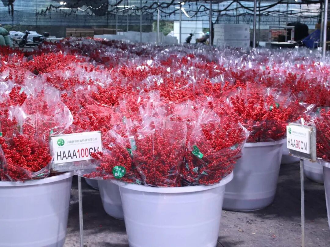 北美冬青,以挂满枝头的亮丽红果,成为年宵花市不可或缺的“红火”产品。从2006年首次引种试种,到如今南北产区联动、万亩基地连绵,北美冬青已经从“小众”走向“大众”。本期专题,讲述北美冬青引种者、种植者及两大产区的发展故事,展示这种“舶来”植物引种驯化、规模种植的国产化推广之路。 ——2025年12月《中国花卉园艺》杂志 2025年12月中旬,云南曲靖市会泽县五星乡大坪子村,云南新桉农业科技有限公司的北美冬青种植基地硕果累累,灿若红霞。工作人员每天进行采收、分拣、包装,仅会泽基地一天的出货量就有四五百箱,根据不同规格,一箱切枝约有5~10扎。基地井然有序的繁忙景象,正是当下北美冬青行业火热发展的一个生动注脚。 ▲2025年昆明花展上,新桉农业展位如同北美冬青的海洋 云南新桉农业科技有限公司成立于2017年,是一家集花卉种植、新品研发、盆花及切花销售、种子和种苗销售于一体的综合性花卉企业,在宣威、楚雄、会泽、文山、元江等地建设生产基地近6000亩,累计投资近6亿元。 致力于北美冬青国产化 对于新桉农业董事长张勇而言,北美冬青事业起步于2015年。当时,他常听到从事进口贸易的朋友谈起,北美冬青需要提前预订、市场紧俏、价格也很高。这让他不禁思考:“这么好的东西,为什么不能国产化呢?” 说干就干。当年,新桉农业就开始引进北美冬青进行种植测试,2017年开始规模化生产,近几年规模迅速扩大,种植面积从最初的一两亩到280亩,再到如今分布在曲靖及周边3200亩的生产规模,年产切枝约300万支,盆栽约100万盆。 ▲‘冬红’ 云南的气候条件具有昼夜温差显著、日照充足等特点,而且海拔适中,非常适合北美冬青生长,培育出的成品果实饱满、色泽浓艳,品质表现尤为突出。在云南,北美冬青在3月左右就开始发芽,开花后便坐果,果实从青转红,再逐渐变亮,一般在10月上旬完全成熟并开始采收,果实变色期的气温适宜,可以一直供应到春节,真正实现“现订现采”。 新桉农业成为云南最早规模化种植北美冬青的企业之一。在他们的带动下,多家企业、农户、合作社纷纷涌入北美冬青种植领域。如今,曲靖不乏上千亩规模的种植企业,几百亩、几十亩的基地比比皆是,北美冬青种植面积已超过一万亩,约占云南总产量的95%。曲靖农业生产原本以土豆、玉米种植为主,引入北美冬青后,带动了当地农业生产的提质增效。 开北美冬青设施化种植先河 北美冬青从全部依赖进口,到国产产品占据绝大部分市场,实现逆袭,一路走来并不容易。正如张勇所说:“技术全靠自己摸索,也走过不少弯路。”从种植第一年出现“肥害”,损失了1万株进口苗,到2022年遭遇极端天气,几乎全军覆没,多年来,新桉农业攻克了水肥管理、病虫害防治、温控等一系列技术问题。同时,通过与北京林业大学、西南林业大学、南京林业大学以及国外的专家、教授加强交流合作,新桉农业不断提升产品竞争力与技术水平,成为国内北美冬青的领军企业之一。 ▲宣威热水切枝生产基地 国内北美冬青生产绝大部分是露天种植,新桉农业在早期也是如此。但在云南,早春倒春寒、夏季冰雹、冬天霜冻等现象频发,露天种植风险很高。新桉农业基地就曾在2022年遭遇极端天气的打击,当年4月下雪后出现霜冻,产品几乎全军覆没,损失严重。张勇痛定思痛,从2023年开始大力投资设施化种植,让新桉成为国内最早采用设施栽培北美冬青的企业。 “当时我就想,不论再怎么难、怎么紧,都要上设施。设施栽培可以规避自然天气的一些不可控因素,有效减少天气带来的损失。做农业如果没有设施,无法与天斗、与地斗。企业要想打造品牌,对客户负责,一定要保持稳定供应优质产品,这也是企业标准化发展的必经之路。”张勇感慨道。 如今,新桉农业基地采用设施大棚种植,实现了水肥一体化管理,可精准用量,同时采用采收、分拣、包装流水线作业,并建设了2万立方米的冷库。今年,经过保鲜处理的切枝产品在打包时又做了优化改进,确保客户收到的货品能保持最新鲜的状态。市场上,新桉农业往往是切枝品质的代名词,很有竞争力。 ▲切枝分级包装 ▲待售的北美冬青 北美冬青切枝根据枝条长度、侧枝数量、果实密度、色泽亮度及果实大小等进行级别划分。新桉的切枝产品侧枝比例可达80%,具有果实数量多、密度大的特点。以优势品种‘奥斯特’为例,果实大,颜色亮,是市场上的抢手货,3A级切枝售价可达40多元一支。 张勇告诉记者,只要采摘时机合适,在适宜室温下,北美冬青瓶插期可达一个半月至三个月。然而一些农户为了抢市场,从9月份就开始采摘,导致果实成熟度不足,容易出现缩果、黑果现象,瓶插期大幅缩短,严重影响消费体验。“现在一些消费者说北美冬青果实放不住,很大一部分原因就是由于一些农户在成熟度不够时就开始采摘,这不利于北美冬青行业的长久发展。在荷兰,一般都是11月集中成熟、采收,放冷库保存几个月都没问题。”张勇说。 切枝与盆栽生产两条腿走路 新桉农业早期只做切枝生产,近年来开始拓展盆栽业务。“这几年盆栽市场需求增加,我们的盆栽产品很受客户喜欢,愿意出高价购买,于是我们在4年前就新建了两个基地,专门生产盆栽。”张勇介绍说。 新桉农业是国内最早生产北美冬青容器苗且体量最大的企业之一。他们的盆栽产品涵盖120型