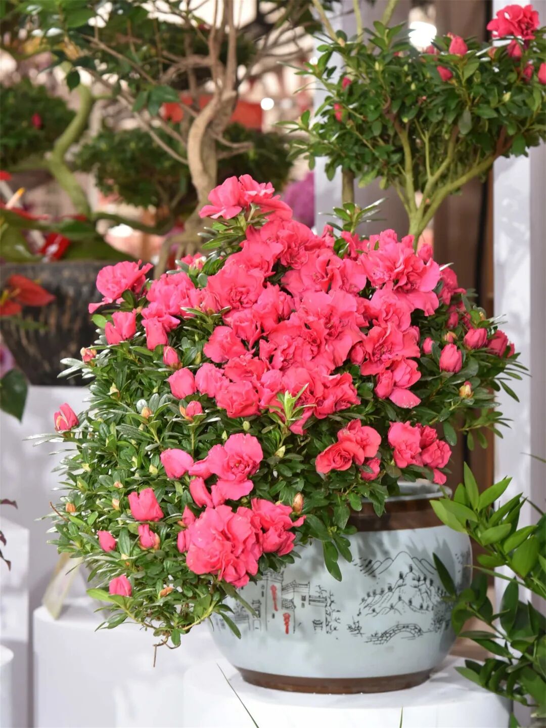 传统年花是春节里最鲜活的景致。它们承载着美好的新年祈愿,装点着我们的年味生活。本期专题,我们一同探寻传统年花产业的转型发展之路,在新时代如何焕发新活力。 ——2026年《中国花卉园艺》第1期 资深年花“杜鹃” 被誉为“高山花园”的福建省漳平市永福镇,凭借得天独厚的自然环境,是我国盆栽杜鹃的核心产区。 “永福花”开遍全国 漳平市林业局高级工程师蔡志勇介绍说,永福种植花卉的传统由来已久,在20世纪80年代初,永福花卉开始规模化、产业化发展,最初以种植国兰、茶花、瑞香为主。到了80年代末,当地花农把目光转向了花色艳丽、花期长、适应性强的西洋杜鹃,开始大量引种栽培。经过一段时间的技术积累,攻克了设施栽培、基质选择、花期调控等关键技术,尤其是通过精准的花期调控,让杜鹃在春节盛开,使其迅速崛起,成为炙手可热的年宵花。而后,杜鹃需求量猛增,市场规模爆发性增长。到了90年代末,永福杜鹃约占全国盆栽杜鹃市场60%~70%的份额,盆栽杜鹃被看作是“永福花”,开始在全国流行开来。 ▲永福花卉中心内长期展示各种精品杜鹃 漳平市金兴园艺发展有限公司董事长、永福花卉协会会长陈金才从20世纪90年代开始种植杜鹃花,见证了永福杜鹃产业的发展壮大。陈金才回忆说,1999年昆明世园会上亮相,让永福杜鹃声名鹊起;2019年北京世园会上绽放,进一步扩大了永福杜鹃的品牌影响力。“控花技术的成熟,以及造型杜鹃、盆景杜鹃的突破,推动永福杜鹃的市场占有率达到80%。”陈金才感慨道。 如今,永福杜鹃花种植面积3.8万亩,年产1100万~1200万盆,全产业链年产值超40亿元。为了拓展市场,永福花农积极走出去,将杜鹃品种与种植技术带到四川、贵州、云南、上海、海南以及广东等多个省市,带动省外杜鹃花种植面积超过18万亩。 ▲稳重的盆景造型杜鹃 四川成都是杜鹃的另一大主产区,杜鹃产业从2003年左右起步,2016年达到高峰,年产量超1000万株,2020年左右种植量开始减少,目前年产量在几百万株左右。 从事杜鹃种植30年的钟家云是当地大户,自有基地年产量200万株,带动其他种植户年销量400万株。品种以‘西玛’‘小桃红’‘樱桃红’‘杨梅红’‘胭脂红’等为主,产品规格多样,既有16寸、18寸和21寸盆,也有冠幅达2米的景观杜鹃。钟家云回忆说,起初在永福花农带动下,成都杜鹃产业慢慢发展起来,后来贵州花农也到成都种植,再加上本地花农,高峰时有300多家农户种植杜鹃,除了供应本地市场,还销往全国各地。与福建盆栽杜鹃大部分用于年宵不同,成都产杜鹃仅20%左右用于年宵,其余主要用于工程绿化,全年都有销售。 ▲家庭消费需要合适的产品类型跟进 放眼全国市场,近年来花卉行情出现明显波动,杜鹃也不例外。钟家云坦言,房地产、园林绿化、市政和私家花园用花需求均有萎缩,今年当地杜鹃销量明显下滑,产品多以中小规格为主,行情趋于平淡,主要销往二、三线城市。“以往产量不足时还需要从福建调货,但今年走货放缓。”钟家云的话,道出了业者共同面临的压力。 以“变”应“变”重塑产业链 面对种植面积缩减、行情下行的压力,杜鹃从业者凭借敏锐的市场洞察力,持续调整产品与方向,通过多维创新主动突围。蔡志勇表示,品种、产品、渠道与应用的持续革新,是产业升级的核心动力。近期,永福杜鹃销售已出现回暖迹象。 品种的极大丰富,使盆栽杜鹃作为传统年宵花不断散发新活力。近年来,永福广泛引进东洋鹃、冬鹃、夏鹃等多个品类,打破了早年仅靠三五个品种打天下的局面。针对普通消费者规模生产的品种增加至10余个,专业种苗生产企业的品种增加至两三百个,永福储备的杜鹃种质资源达600个。 ▲艺术化的造型为杜鹃带来更大的附加值 产品形式的推陈出新,直观地体现在造型产品的不断迭代上。从早期的圆冠、蘑菇形,到引入传统盆景技艺制作的云片式、悬崖式等,再到如今规模化生产、适合案头摆放的微型盆景,产品不断向精致化、艺术化延伸。由于适合家庭消费,精美的微型造型杜鹃并不局限于年宵市场,全年可销售,市场需求稳步增长。 陈金才是永福从事造型杜鹃的先行者,从2000年就开始研发造型产品。他创作的“富贵游龙”“招财进宝”“龙凤呈祥”“元宝”“吉星高照”等造型杜鹃,深受市场青睐。近年来,他将盆景理念融入造型,制作出的自然式杜鹃盆景大受好评。“用盆景思维开发杜鹃产品,能延长产业链,提升附加值,让永福杜鹃继续大放异彩。”陈金才说。 目前,金兴园艺年产造型杜鹃5万~6万盆,规格从三年苗至20多年苗不等,根据年限、造型不同,价格从几十元至几万元不等,产品销往广州、北京、常州、郑州、青州、四川等地。其中,家庭消费以3~5年生苗为主,大型盆栽产品主要用于展览及景观应用。 ▲一到过年,全国的市场都会出现杜鹃花海 在销售渠道上,近万名永福花农遍布全国各地,建立起传统线下销售网络。同时,电商与直播销售占比明显提升。从销量看,年宵占比约有一半,除国内市场,永福杜鹃还出口至南亚、中亚等地区。 杜鹃的应用场景也从单一的年宵花,拓展至园林景观应用、旅游伴手礼及专业展览等形式,并出现了专业培育景观地栽苗的企业,毛鹃、安酷杜鹃等品类年产量逐年增长。 开启“花旅融合”新篇章 身处产业转型的关键期,从业者将目光又投向“花卉旅游”,实