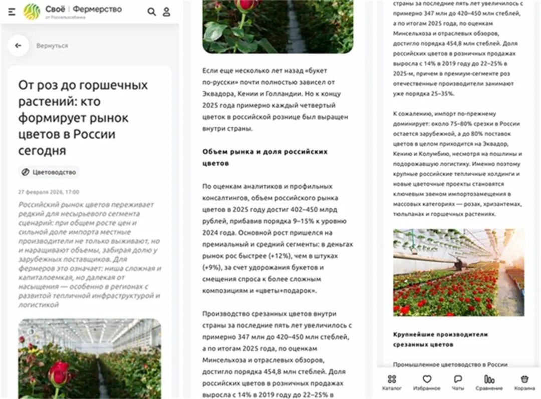 ▲svoefermerstvo.ru网站报道 svoefermerstvo.ru 是俄罗斯大型农业综合服务平台,由俄罗斯最大的国有银行之一的俄罗斯农业银行(Rosselkhozbank)在2020年创立。最近,该网站推出有关俄罗斯鲜花产业的报道,对俄罗斯切花和盆花产业现状进行了分析,并着重关注进口替代的可能性。 市场规模和份额 据相关专业咨询公司预计,2025年俄罗斯花卉市场规模已达4020亿~4500亿卢布(约380亿元人民币),比2024年增加约15%,增长的部分主要集中在中高端市场。由于鲜花价格上涨,销售额增长速度(+12%)明显高于花卉数量增长(+9%)。而且,花卉需求也倾向于组合产品和“鲜花+礼物”的形式。 据俄罗斯农业部统计,2025年俄罗斯国内切花产量约为4.548亿支。而5年前,这个数字是约3.47亿支。本土花卉在零售中的份额也从2019年的14%上升到2025年的22%~25%,在高端玫瑰领域,国内生产商已经占据了25%~35%的份额。 虽然国产花卉数量在增加,不过,进口产品仍然是俄罗斯国内花卉市场上的主要来源。目前,俄罗斯75%~80%的切花来自厄瓜多尔、肯尼亚和哥伦比亚等地。而且尽管关税和物流成本较高,但进口数量仍旧在上升。 ▲现代化花卉设施生产 另据报道,2024年夏季,俄罗斯将一些国家的鲜花进口关税从5%提高到20%,但并未取得预期效果。欧洲供应商调整了物流链,开始通过欧亚经济联盟(EAEU)成员国家运送货物。而且自2020年以来,许多荷兰公司已将生产转移到厄瓜多尔和肯尼亚,因为那里的生产成本更低。 切花及盆花生产现状 俄罗斯主要的切花设施生产集中在不同地区的温室群中,玫瑰、菊花、非洲菊、郁金香、百合和季节性切花是主要产品。 ▲地区性花卉生产 卡卢加花卉控股公司(Florentika)是俄罗斯最大的花卉生产商之一。在27公顷的土地上,种植着48个品种玫瑰、42个品种非洲菊、郁金香等球根类切花和盆栽植物。Mir flotov集团,在18公顷温室每年生产4000万支、40~60个品种的玫瑰,产量约占俄罗斯切花玫瑰市场的15%。列宁格勒州“新荷兰”农场也可每年生产3500多万支切花。位于南部的TK Yug Rusi公司年产3500万支玫瑰、郁金香和菊花。另外,别尔哥罗德地区的Izovol 农业公司、莫斯科地区的Podosinki公司和Linia公司也都拥有每年2000万支的生产能力。 除了由联邦政府统计的这些大型公司,各个地区还有不少地区性农场、企业推动了花卉生产的热潮。就数量而言,这些生产商远不如大公司有实力,多为各个节日生产季节性花卉,但正是这些生产商满足了其周边地区的需求,供应当地花店、花艺工作室和酒店。 相对于切花,俄罗斯盆栽和室内植物更加依赖荷兰和亚洲进口,但近年来,这一局面也在改变。比如俄罗斯最大的盆栽玫瑰生产商——位于新西伯利亚的Gorkunov集团拥有6公顷自动化温室,每年种植约900万盆科德斯“Kordana”玫瑰,完全替代了进口产品,还有莫斯科农业控股公司为首都地区提供观赏切花、盆栽和种苗,与网络、花园中心和DIY零售合作。而在资材产品方面,也有一些花盆、包装等生产商,以减少对进口塑料和纸板包装的依赖。 俄罗斯联邦现在共划分有8个联邦区,花卉种植集中在中央、伏尔加、西北和南部4个联邦区,约占俄罗斯设施花卉产量的75%以上。其中,中央联邦区大约占35%(莫斯科及卡卢加地区、克拉斯诺达尔地区),伏尔加联邦区大约33%(莫尔多维亚和乌德穆尔蒂亚等温室地区),西北联邦区大约12%~17%(列宁格勒地区),南部联邦区大约10%~11%(克拉斯诺达尔地区及周边)。 每个地区也分别有自己的特色。莫斯科和卡卢加地区在切花和盆栽作物总量上保持绝对领先,合计可以占全国花卉总产量的28%;克拉斯诺达尔地区提供了超过20%的切花,特别是郁金香、玫瑰和菊花;莫尔多维亚拥有大型温室综合体,占总产量的12%;乌德穆尔是重要的切花生产区,占全国总产量的8%;列宁格勒占全国总产量的10%~12%,生产全国1/10的玫瑰。 2026年:涨价、线上和进口替代 2026年,俄罗斯花卉市场仍然呈现出“昂贵但仍在增长”的状态,预计交易量为4800亿~5200亿卢布,增长率可能会达到10%~15%。现在,花束平均价格已经超过3.8万卢布,而且还在继续增长,尤其是在高端市场和线上渠道更为明显。 2025年,俄罗斯线上鲜花销售增长了约25%,2026年,主要城市线上销售份额将接近60%~70%,远高于俄罗斯平均30%的网购率。预计到2027年,街头零售的市场份额将下降至3%~5%。 与此同时,2026年,俄罗斯本地产花卉所占的零售份额将持续增加,专家认为,到2030年,如果可以保持现有的温室项目投资速度,本国产花卉的市场占有率有可能上升到50%。进口替代是稳定价格的一个显著方式。不过,对于农户和温室经营者来说,在俄罗斯进入花卉市场的技术和投资门槛仍旧很高。俄罗斯农业银行在其服务网站的报道中这样说,投资花卉要把重点放在有完善的温室基础设施和物流的地区;选择有明显进口替代优势或本地短缺的产品(盆栽、季节性、景观观赏作物);在销售方面,线上渠道和营销模型很重要,而不仅仅专注批发和线下市场。 在另一篇报道中,从俄罗斯起家的网络花卉平台Flowwow业务发展经理Alexander Vennikov说,高资本密集度仍然是进口替代的主要障碍,种植玫瑰、菊花和六出花等受欢迎的品种需要昂贵的、具有气候控制能力和高能耗的温室,成本极高。全国花卉生产者协会(NAF)执行主任Victoria Krylova也说,目前在用的温室有不少是翻新或者关闭后重新利用的,自2020年以来,